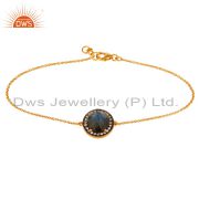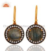 24K Gold Plated Sterling Silver Labradorite Gemstone Ring With Cz