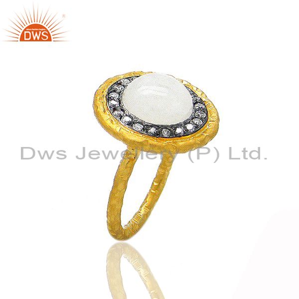 24K Gold Plated Sterling Silver Rainbow Moonstone Hammered Cocktail Ring