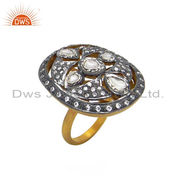 24K Matte Gold Plated Sterling Silver Cz Crystal Polki Victorian Cocktail Ring