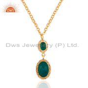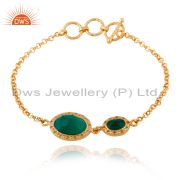 24K Yellow Gold Plated Green Onyx And White Topaz Sterling Silver Cocktail Ring