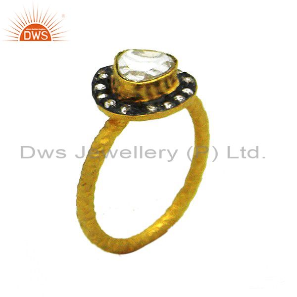24K Yellow Gold Plated Sterling Silver Crystal Cz Polki Hammered Stackable Ring