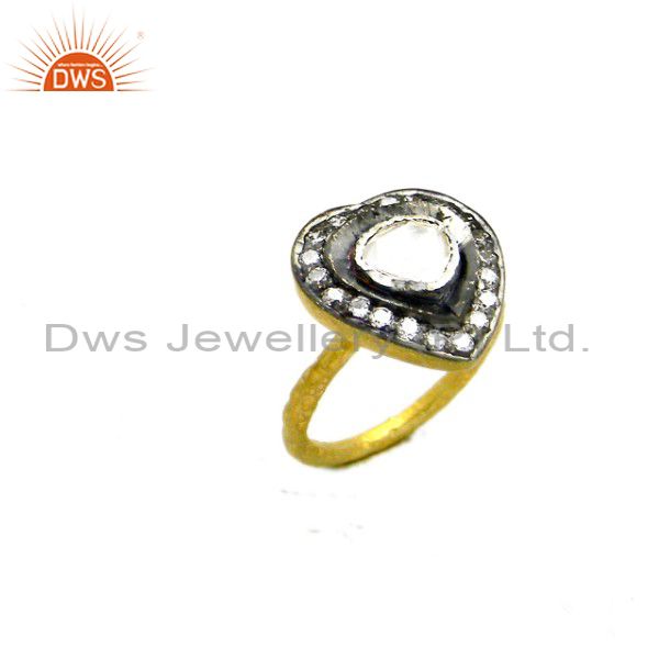 24K Yellow Gold Plated Sterling Silver Crystal Polki Hammered Stack Heart Ring