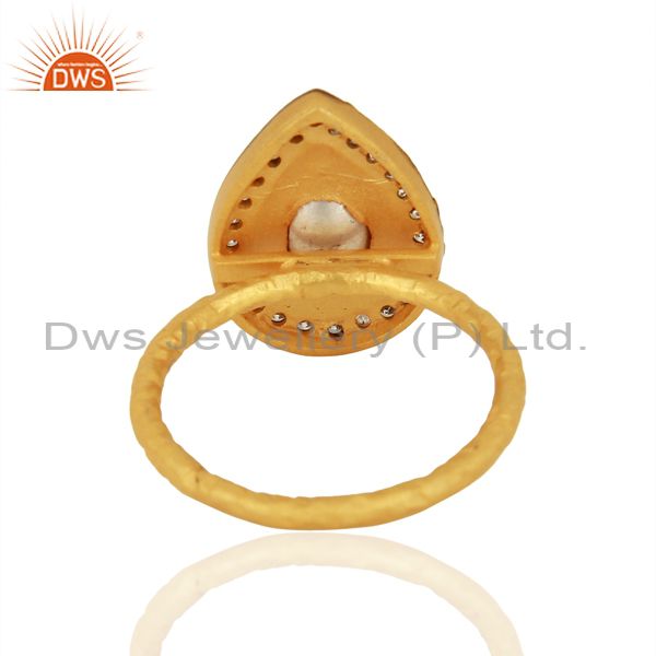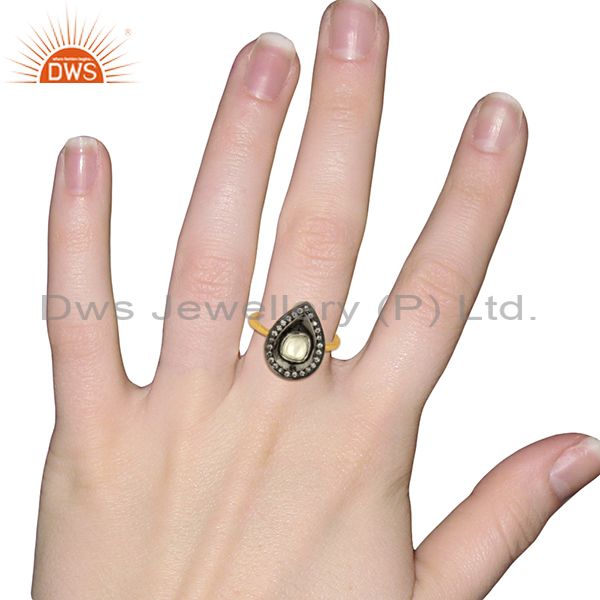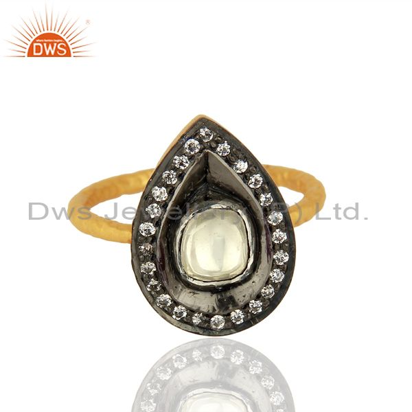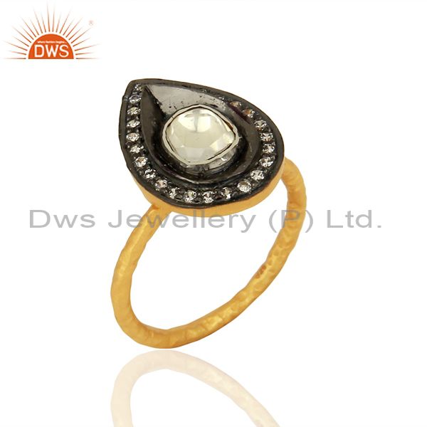 24K Yellow Gold Plated Sterling Silver Crystal Quartz Polki Hammered Stack Ring