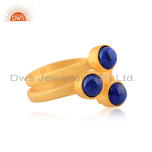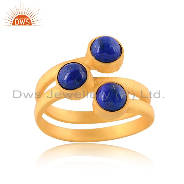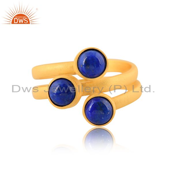 3 Lapis Lazuli Gemstone Gold Plated Silver Spiral Band Ring