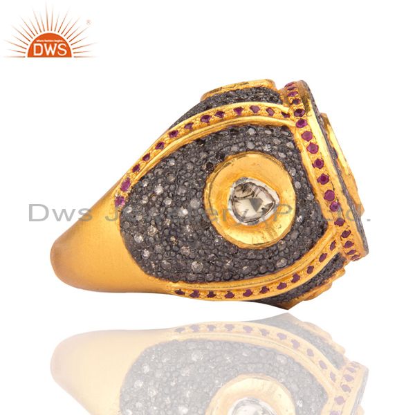 3.58Ct Rose Cut Diamond Ruby Gems Jewelry 18K Gold 925 Sterling Silver Victorian