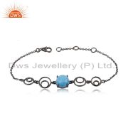 92.5 Silver Black Rhodium Plated Turquoise Gemstone Ring Manufacturer India