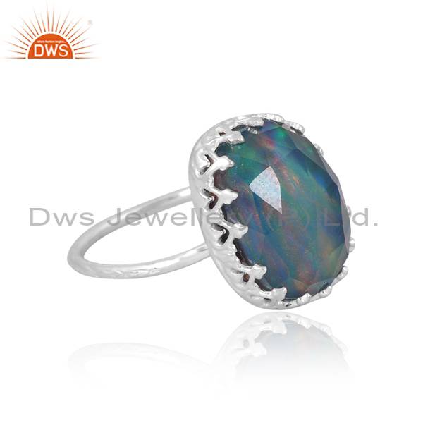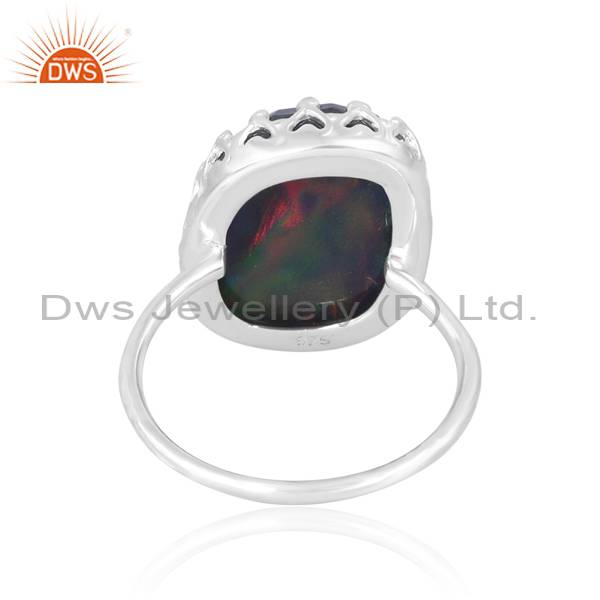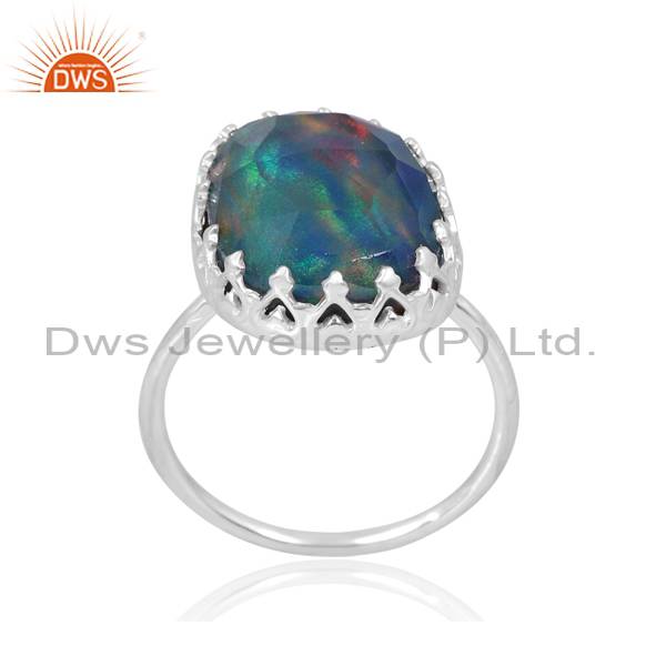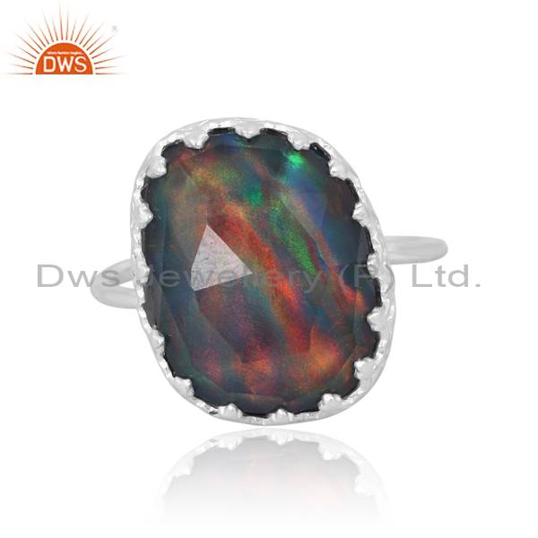 925 Silver Finger Ring With Unshape Aurora Opal Red Green