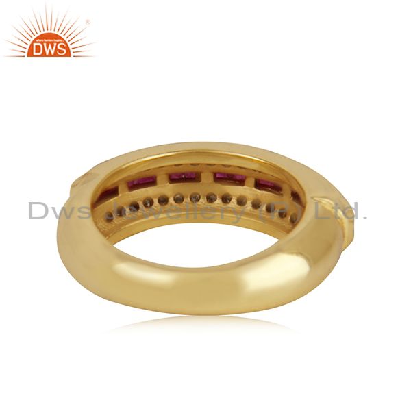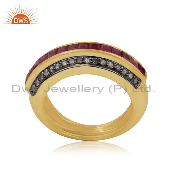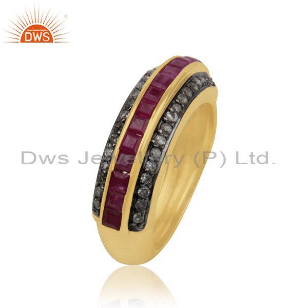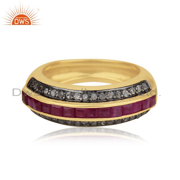 925 SIlver Gold Plated Natural Ruby Pave Set Diamond Ring Jewelry