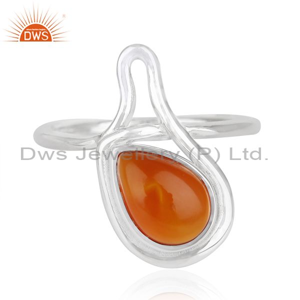925 Silver White Rhodium Plated Chalcedony Gemstone Ring Wholesale