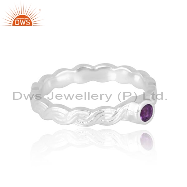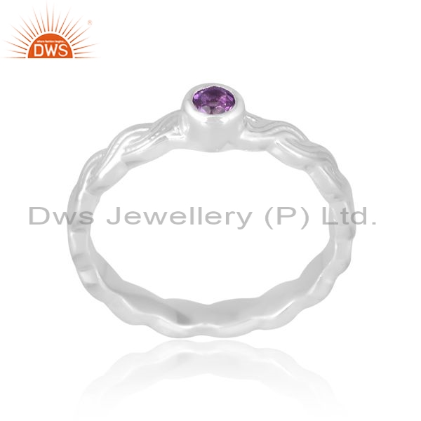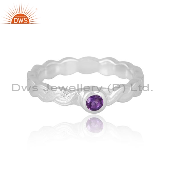 925 Silver White Ring With Amethyst Round Cut Gemstone