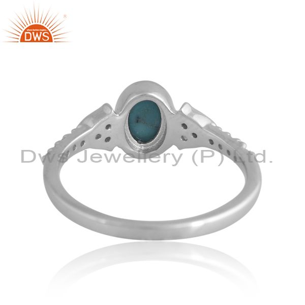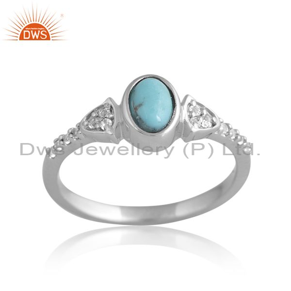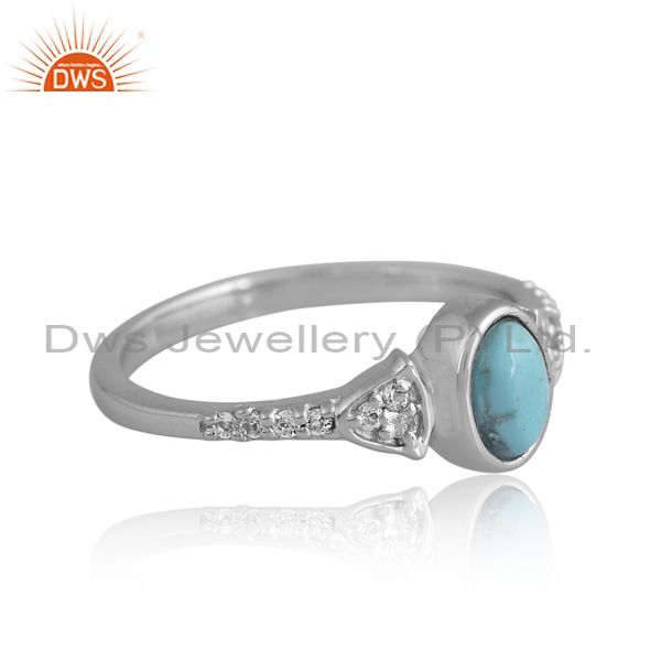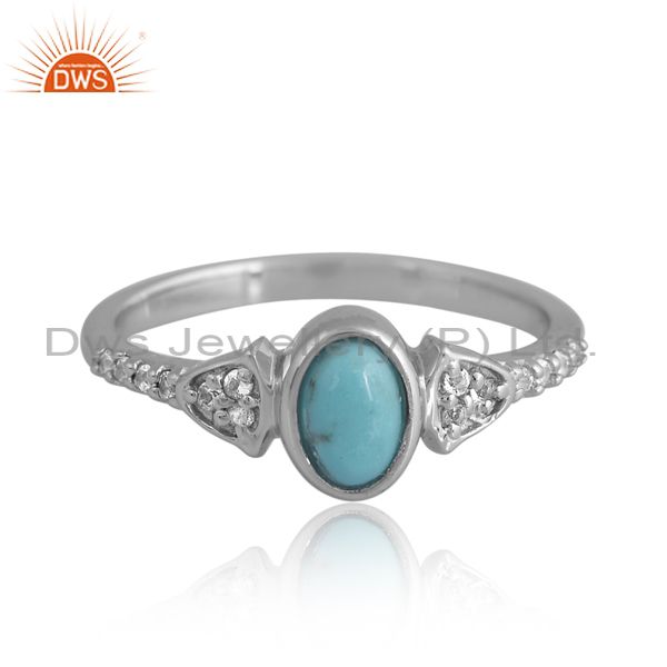 925 Silver White Ring With Arizona Turquoise And White Topaz