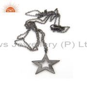 925 Solid Sterling Silver With Black Oxidized Double Star Statement Ring