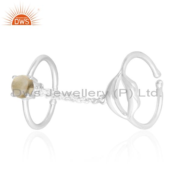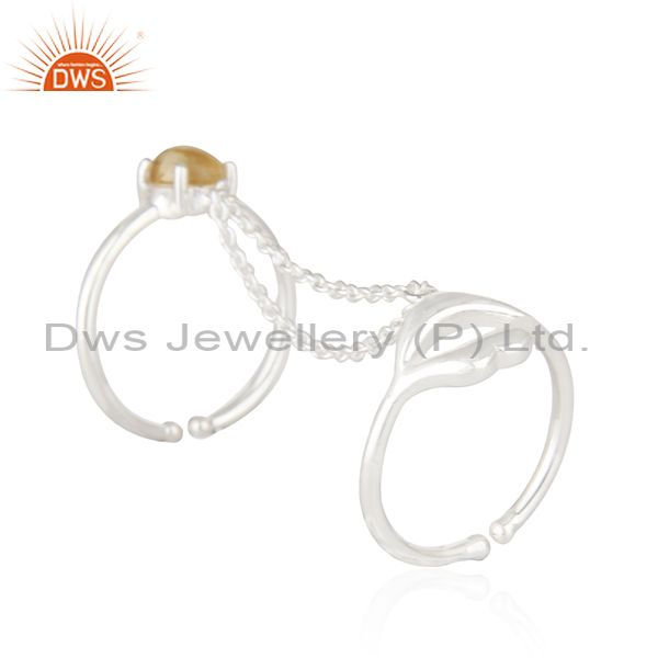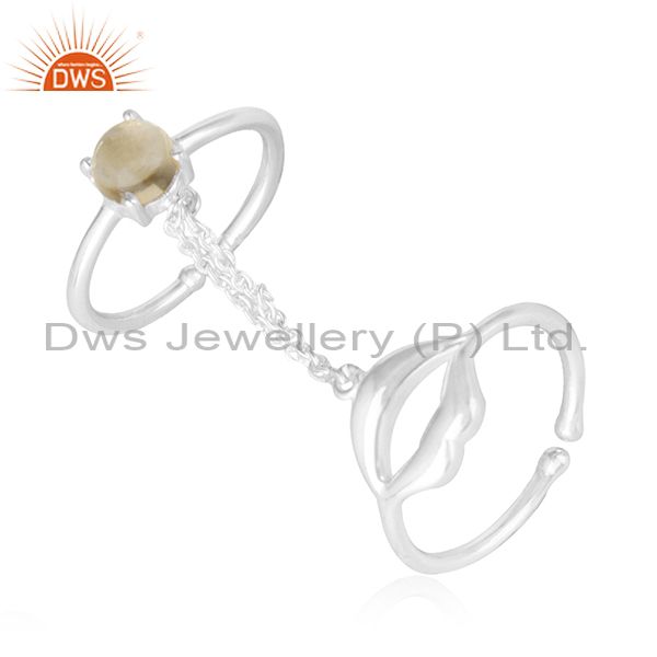 925 Sterling Fine Silver Citrine Gemstone Double Finger Lip Design Ring Supplier