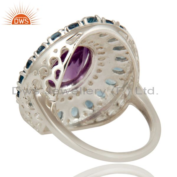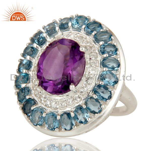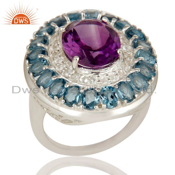 925 Sterling Silver Amethyst And Blue Topaz Cluster Statement Ring