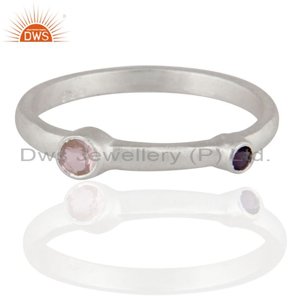 925 Sterling Silver Amethyst And Rose Quartz Gemstone Designer Ring