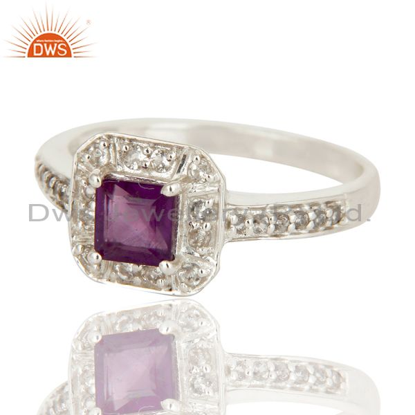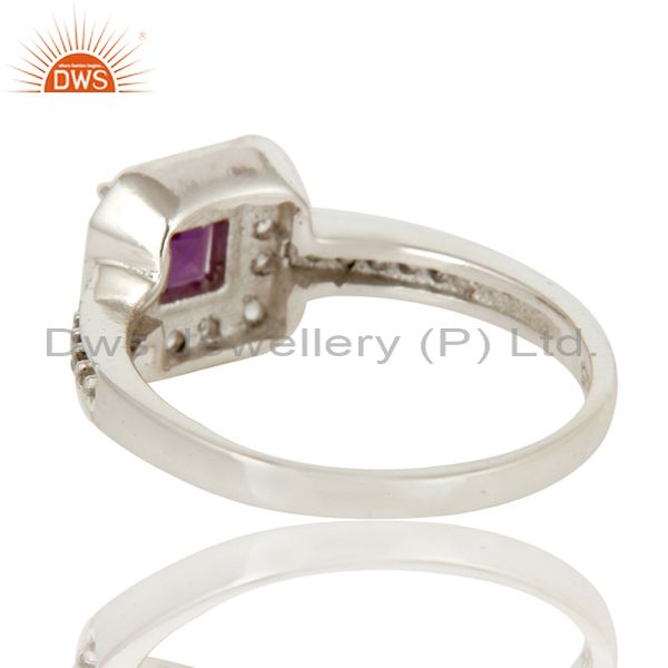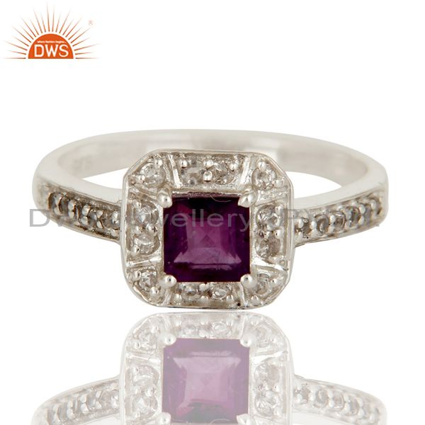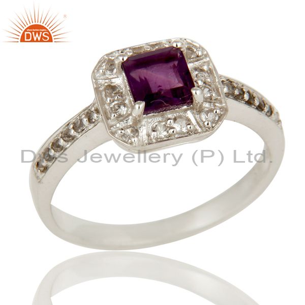 925 Sterling Silver Amethyst And White Topaz Gemstone Halo Style Ring