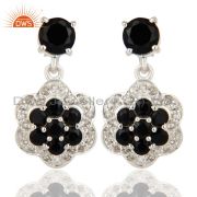 925 Sterling Silver Black Onyx And White Topaz Gemstone Cluster Cocktail Ring