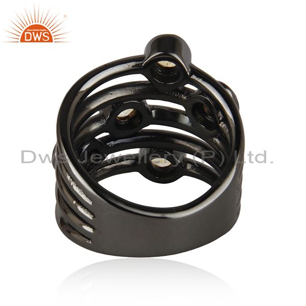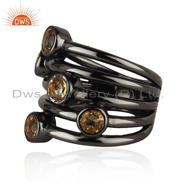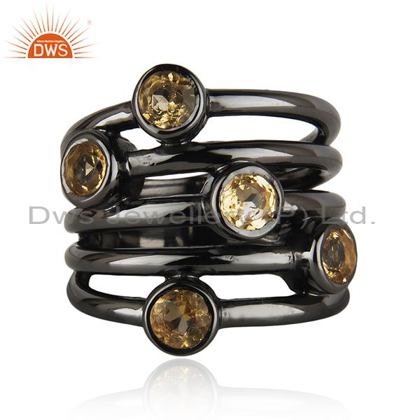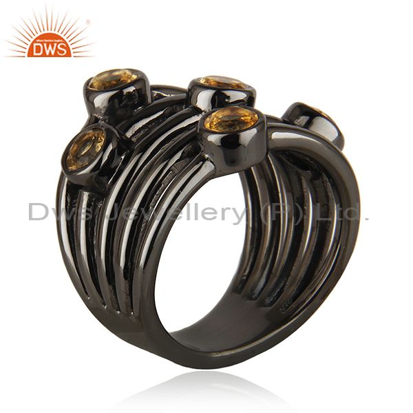 92.5 Sterling Silver Black Rhodium Plated Citrine Gemstone Statement Rings