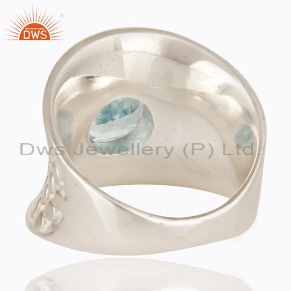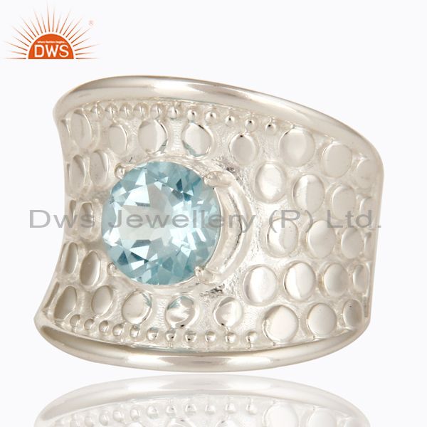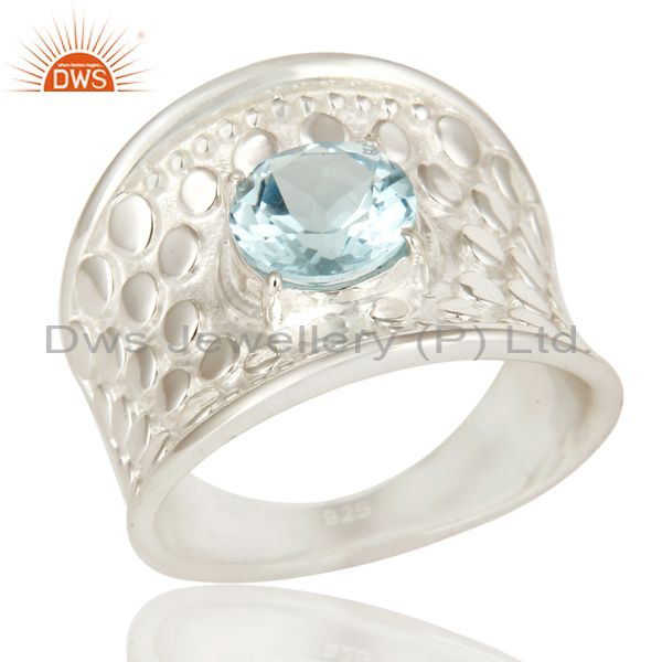 925 Sterling Silver Blue Topaz Gemstone Prong Set Dome Ring