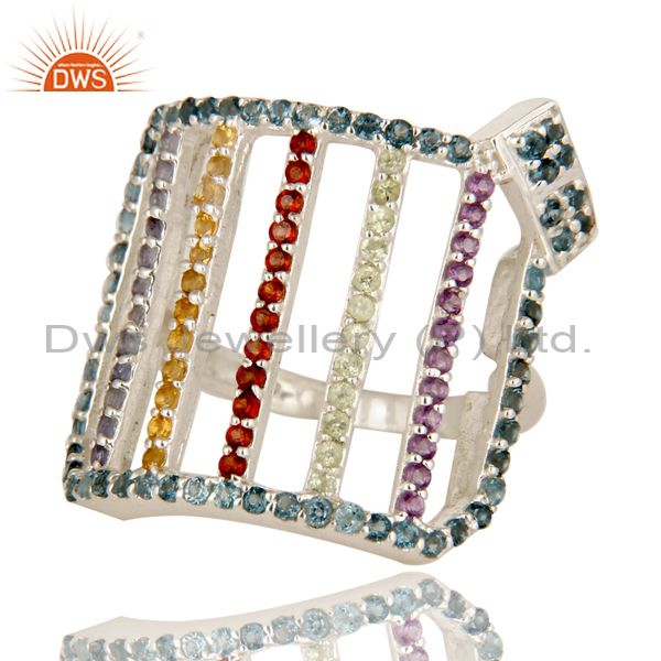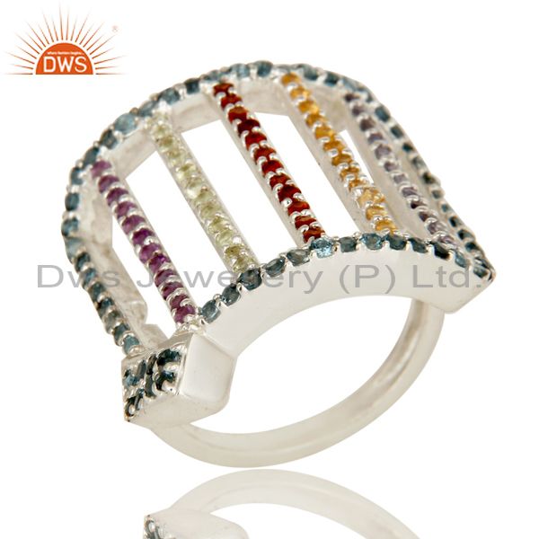 925 Sterling Silver Cluster Multi Colored Gemstone Designer Dome Ring