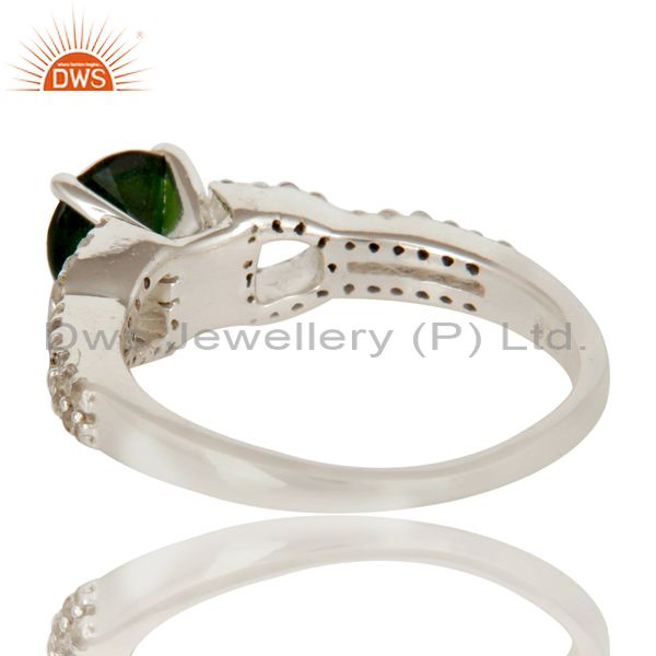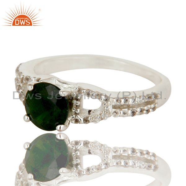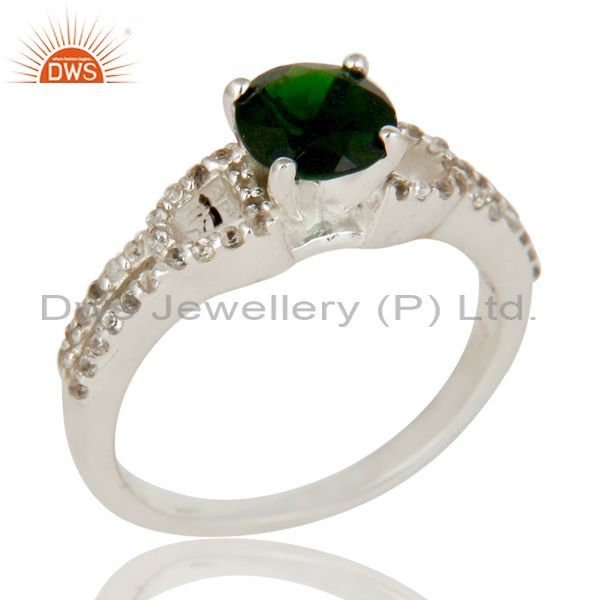 925 Sterling Silver Diopside Chrome And White Topaz Halo Style Ring