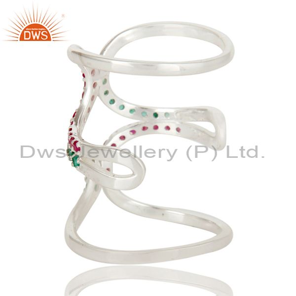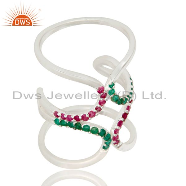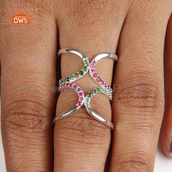 925 Sterling Silver Emerald and Ruby Birthstone Gemstone Designer Knuckle Ring