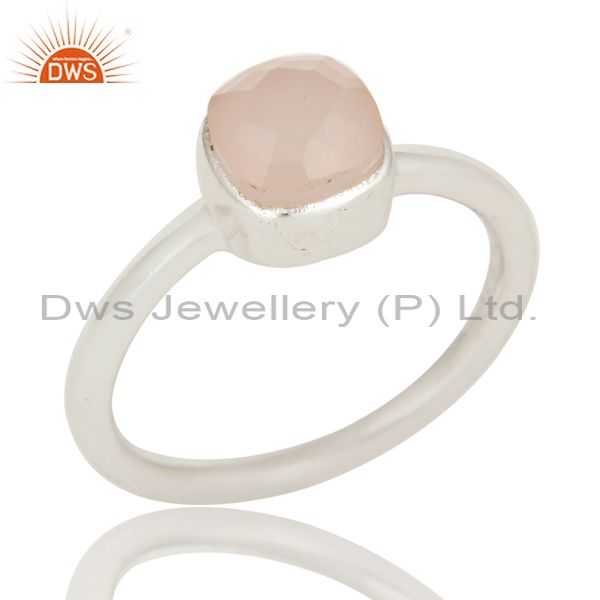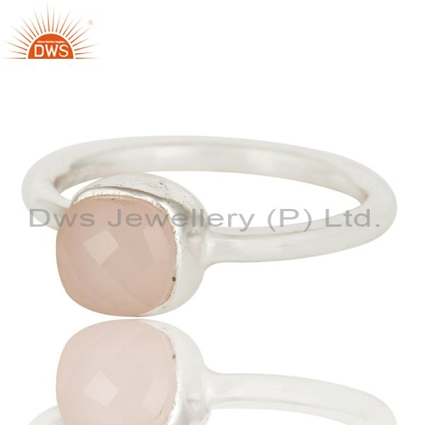 925 Sterling Silver Faceted Rose Quartz Gemstone Stackable Ring