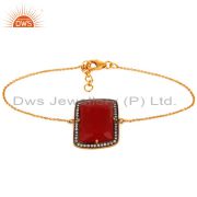 925 Sterling Silver Gold Plated Red Onyx Faceted Gemstone Ring With Pave CZ