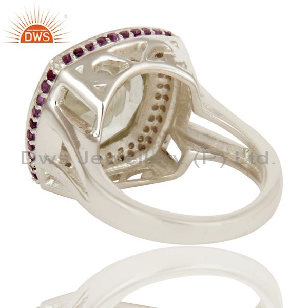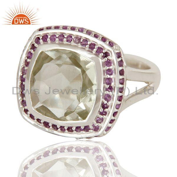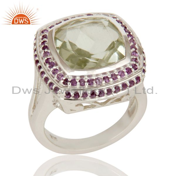 925 Sterling Silver Green Amethyst and Amethyst Gemstone Statement Ring