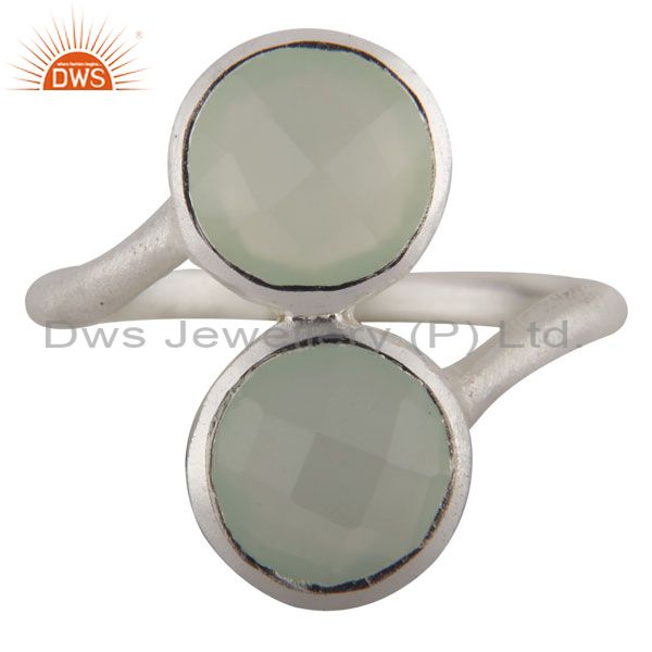925 Sterling Silver Green Chalcedony Faceted Gemstone Stack Ring