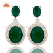 925 Sterling Silver Green Onyx And White Topaz Solitaire Ring