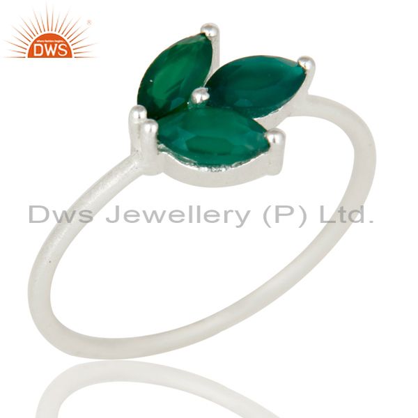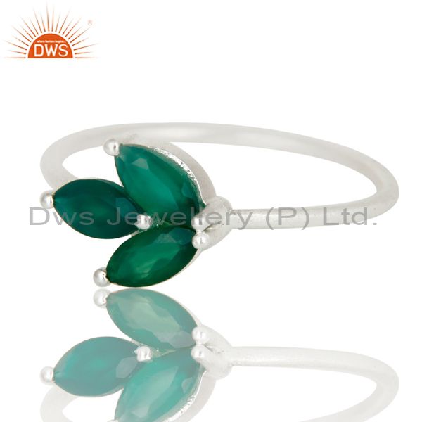 925 Sterling Silver Green Onyx Prong Set Gemstone Ring