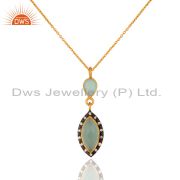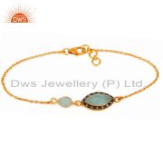 925 Sterling Silver Handmade Gold Plated Aqua Glass Gemstone Ring With Cz