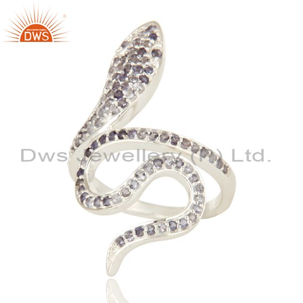 925 Sterling Silver Iolite Gemstone Snake Design Knuckle Ring