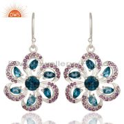 925 Sterling Silver London Blue Topaz & Amethyst Prong Set Flower Cocktail Ring