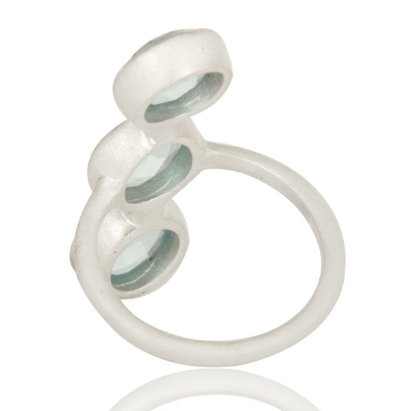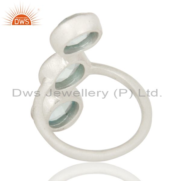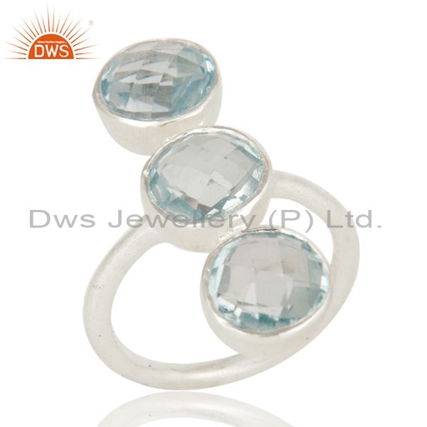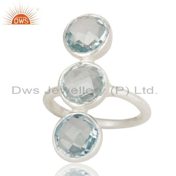 925 Sterling Silver Natural Blue Topaz Gemstone Three Stone Statement Ring