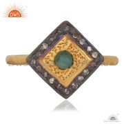 925 Sterling Silver Natural Emerald Gemstone Pave Diamond Stackable Ring