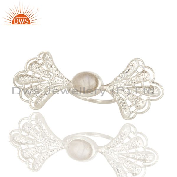 925 Sterling Silver Natural Rainbow Moonstone Gemstone Designer Ring