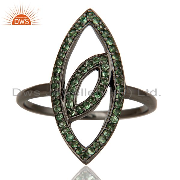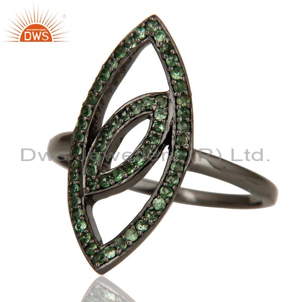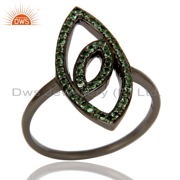 925 Sterling Silver Oxidized Handmade Eye Design Tsavorite Ring Jewelry