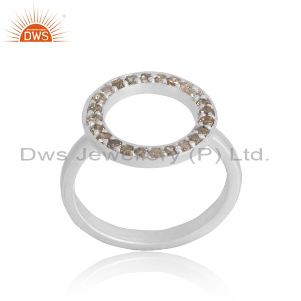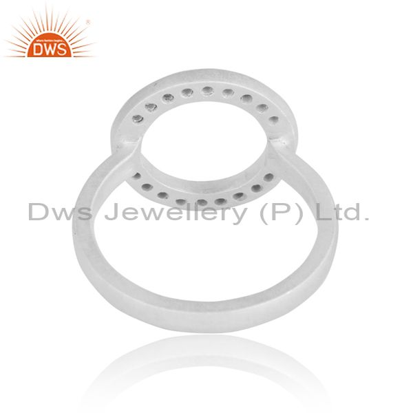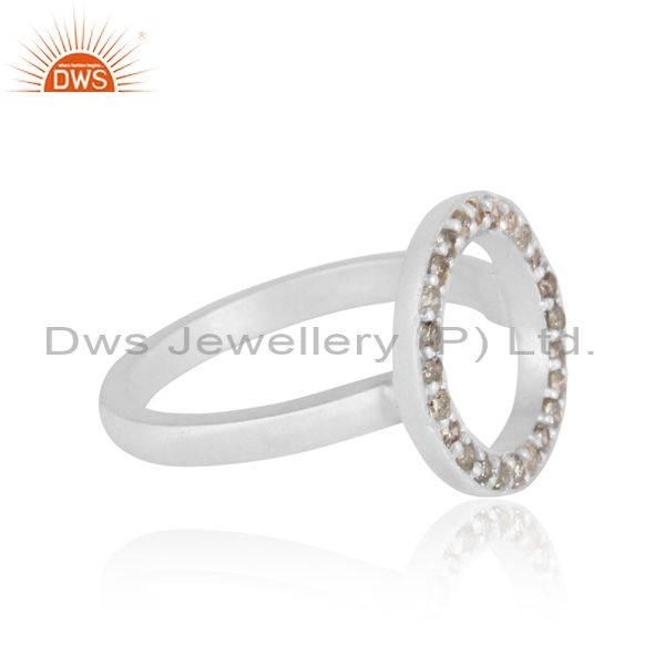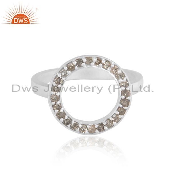 925 Sterling Silver Pave Set Natural Diamond Open Circle Ring