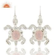 925 Sterling Silver Rose Quartz & White Topaz Tortoise Fashion Womens Ring