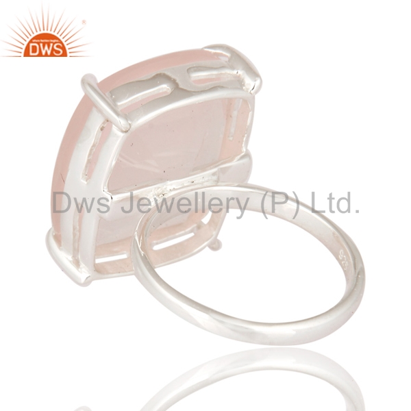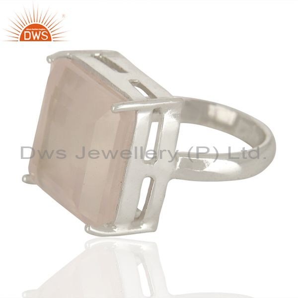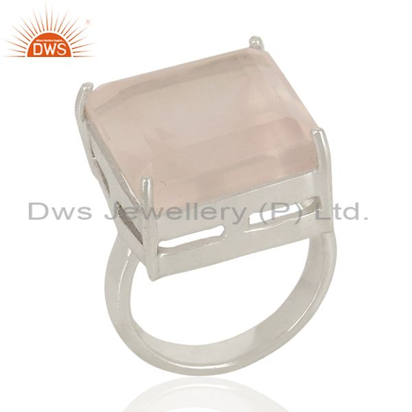 925 Sterling Silver Rose Quartz Gemstone Engagement Wedding Solitaire Ring
