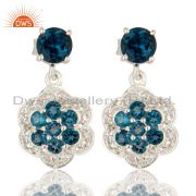 925 Sterling Silver Round London Blue Topaz And White Topaz-Accent Ring
