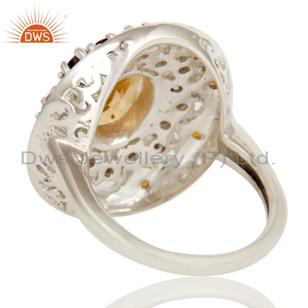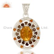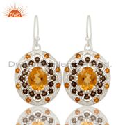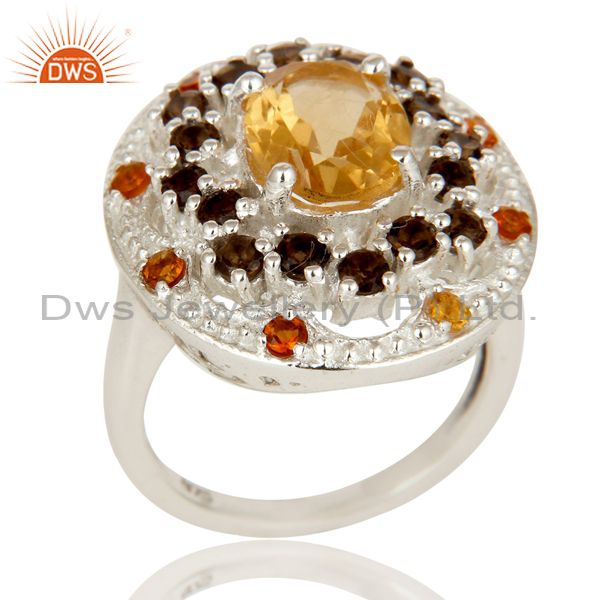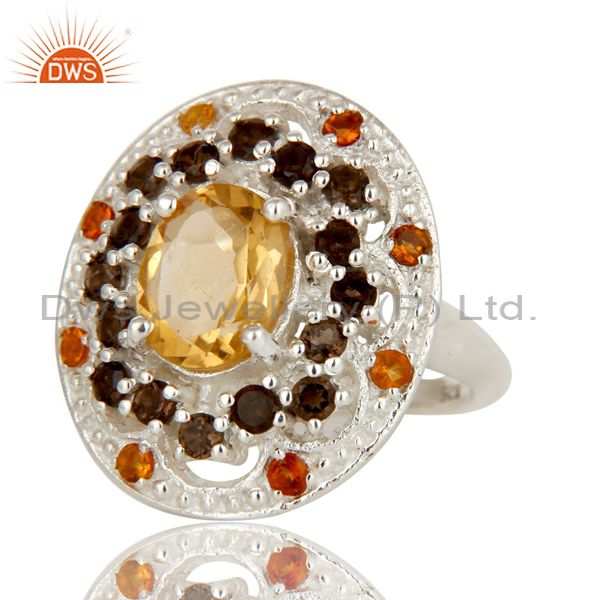 925 Sterling Silver Smokey Quartz and Citrine Gemstone Cluster Statement Ring