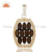 925 Sterling Silver Smoky Quartz And Citrine Gemstone Cluster Statement Ring