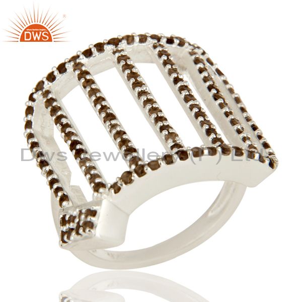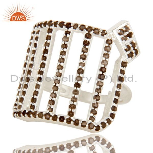 925 Sterling Silver Smoky Quartz Gemstone Multi Cut Dome Band Ring