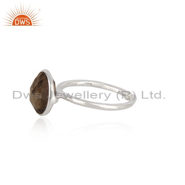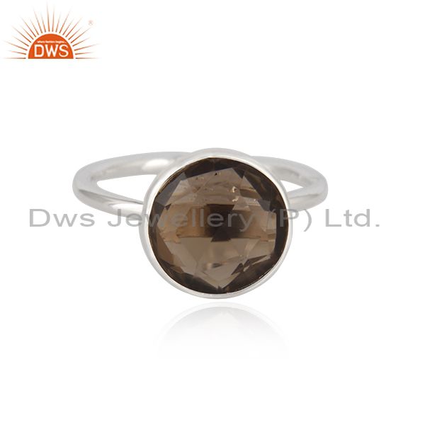 92.5 Sterling Silver Smoky Quartz Gemstone Simple Ring Wholesale Supplier