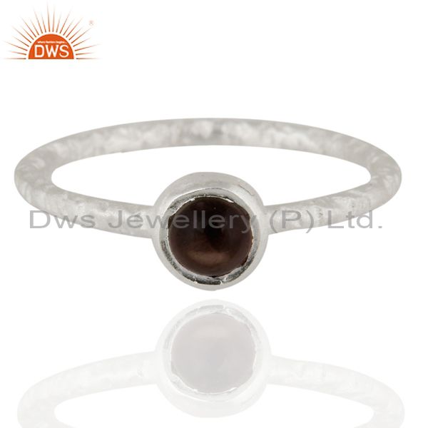 925 Sterling Silver Smoky Quartz Texture Finish Stackable Ring Jewelry
