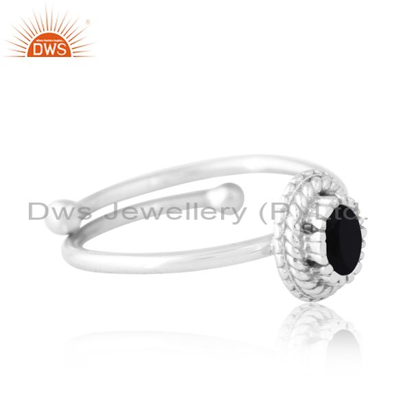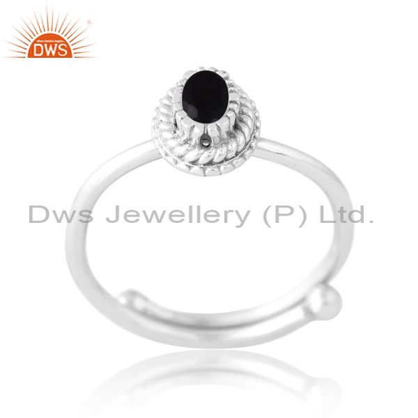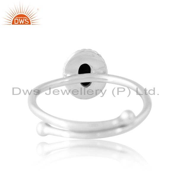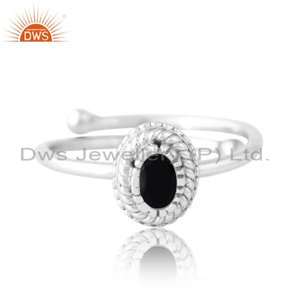925 Sterling Silver White Ring With Black Onyx