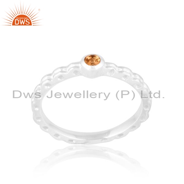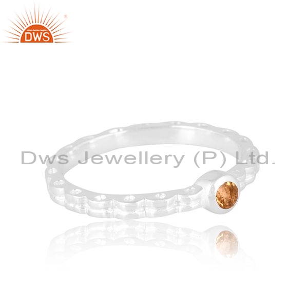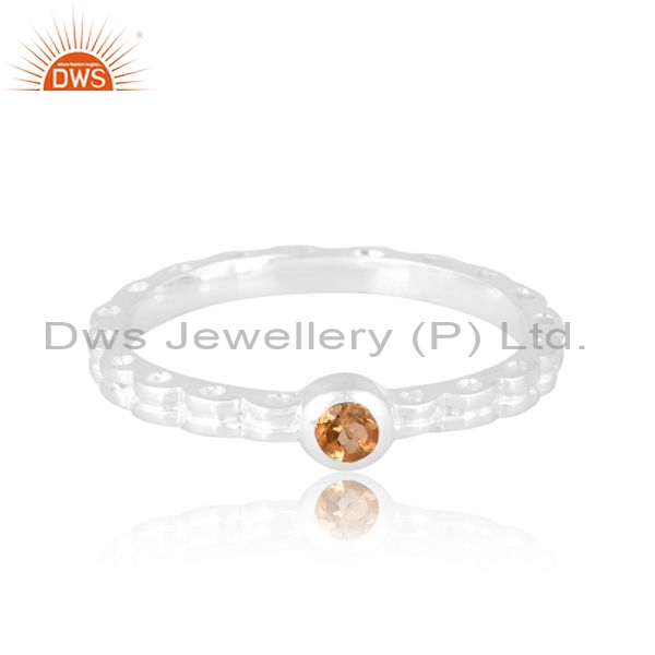 925 Sterling Silver White Ring With Citrine Round Cut Stone